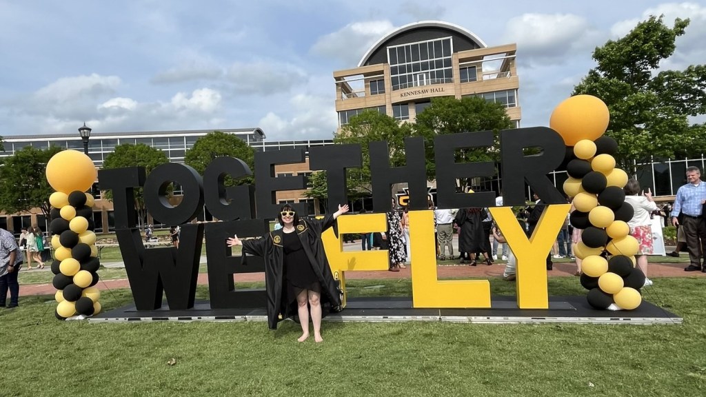 I officially graduated on May 7 with my master’s in business administration. As I mentioned in my previous blog post, I’ve had a complicated relationship with graduation ceremonies. The last time I donned the cap and gown was in 2014 for my high school graduation, in the same black and gold colors, on the same Campus Green. Walking across the Kennesaw State campus was surreal. I was looking at all of the memories I had made on campus from 2014-2019, memories that had no sense of closure because I did not “end” that chapter of my life in any meaningful way. Undergrad came and went without much, if any fanfare. So when I stepped foot on campus last week, it was not just an ending to my MBA – it was an ending to my bachelor’s degree, and the past 10 years. I was giving myself a solid, complete ending. And I looked damn good doing it.